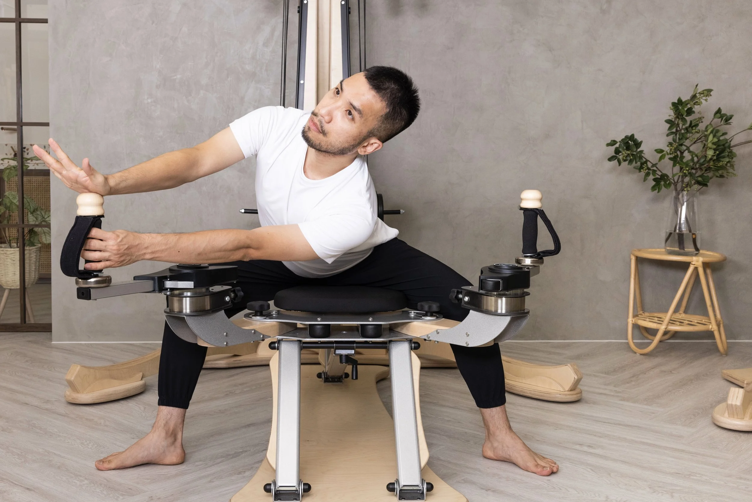 會踏上運動之路,起初是為了療養身體,因關節不適而開始功能性重訓,2019年因緣際會下接觸到人生第一堂墊上禪柔課,在連續一小時流暢的動作中讓身體從內到外的徹底舒展開來,開啟身體從所未有的感官。在充滿好奇心且想更深入了解這門運動的動機下,決定向Master Trainer 謝菁珊老師學習器械禪柔及墊上禪柔。過程中一步步了解自己身體並學會了更精細的控制與穩定。在重訓及禪柔持續併行下,重訓的動作品質與訓練強度也迅速的提升。桂安老師看到自己身體因GYROTONIC而有巨大改變,毅然決然放下時尚產業的背景,投身跳入GYROTONIC的教學。在GYROTONIC運動中沒有是非對錯,適合所有人,因此桂安老師也期望能夠幫助因為身體不適而生活品質受到影響的大家。無論是否有運動的習慣,都能藉由Gyrotonic能重新認識自己的身體;找回身心的和諧與舒暢。